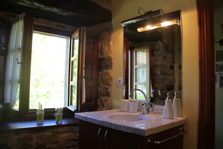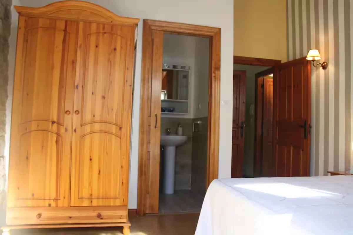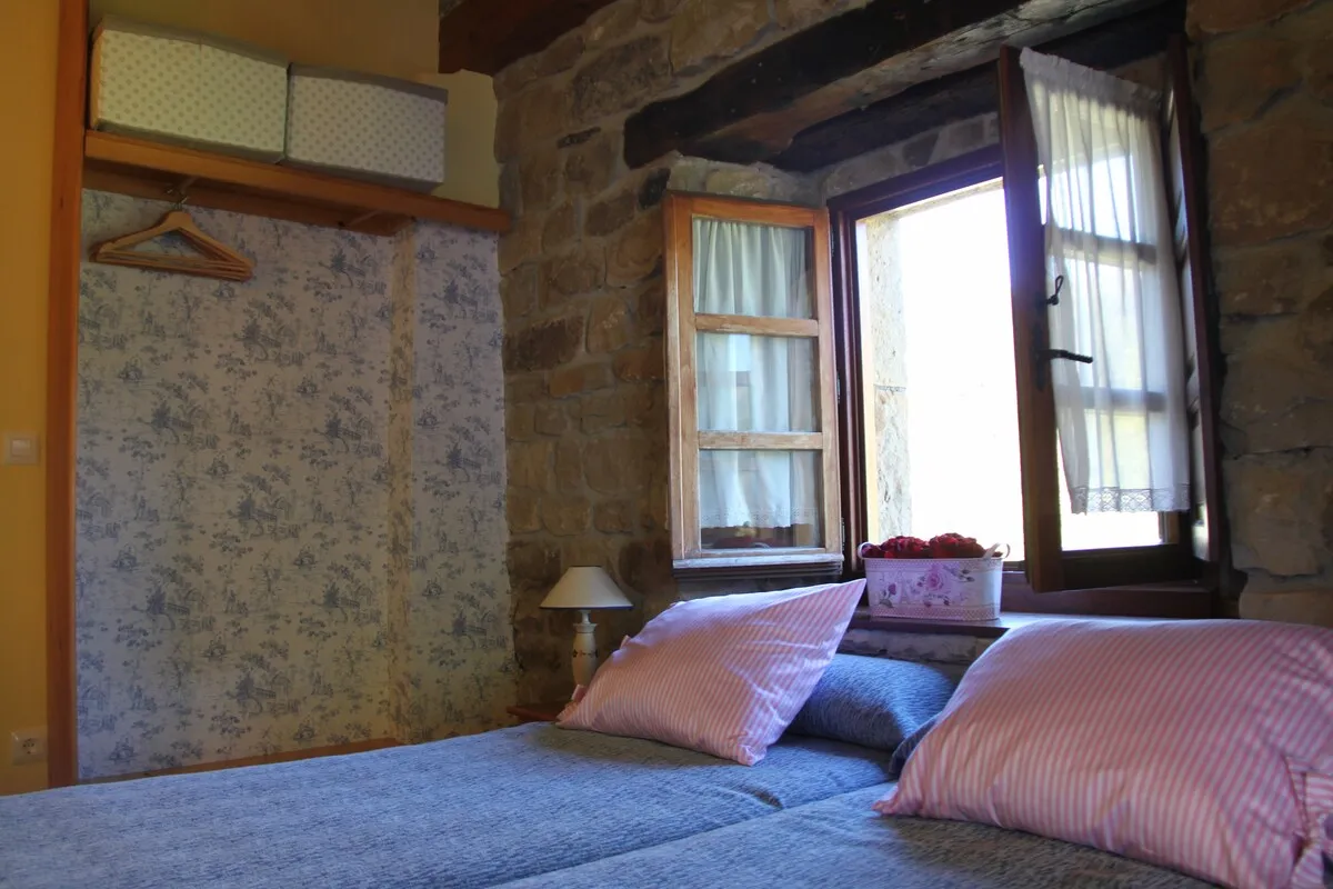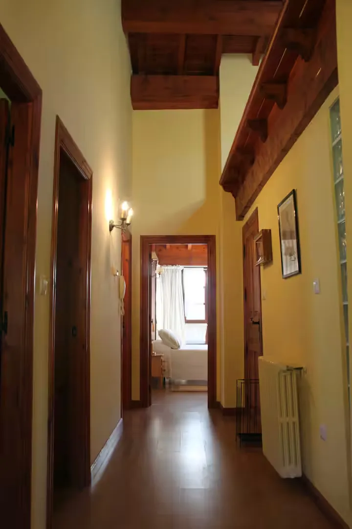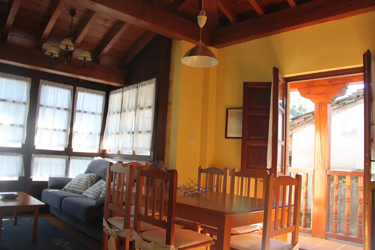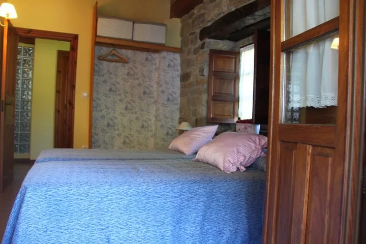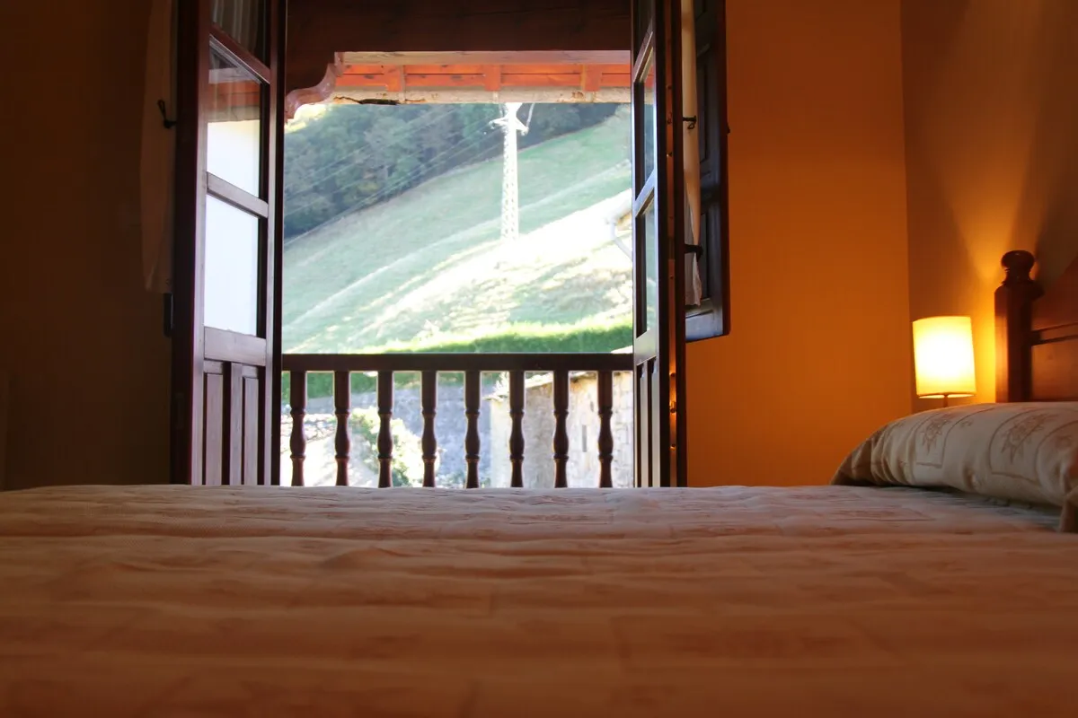 Cada casa rural con encanto dispone de tres habitaciones: una con cama de matrimonio y baño privado, y dos con camas individuales. También incluye un segundo baño completo, pasillo, y un acogedor salón-cocina con galería de madera tradicional cántabra y balcones con vistas.